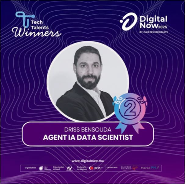 On a été récompensé par La 5ᵉ édition du concours Tech Talents, organisée par le grand salon africain de digital et IA "Digital Now", qui s’inscrit dans une dynamique de valorisation des compétences numériques et de l’innovation technologique au Maroc et en Afrique.